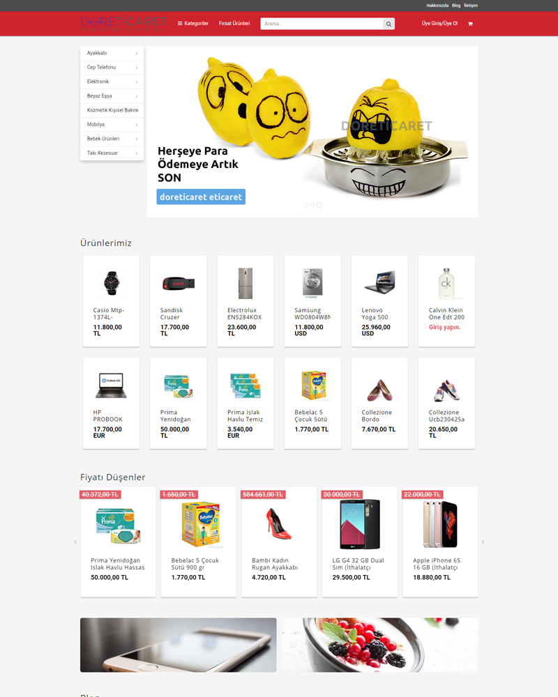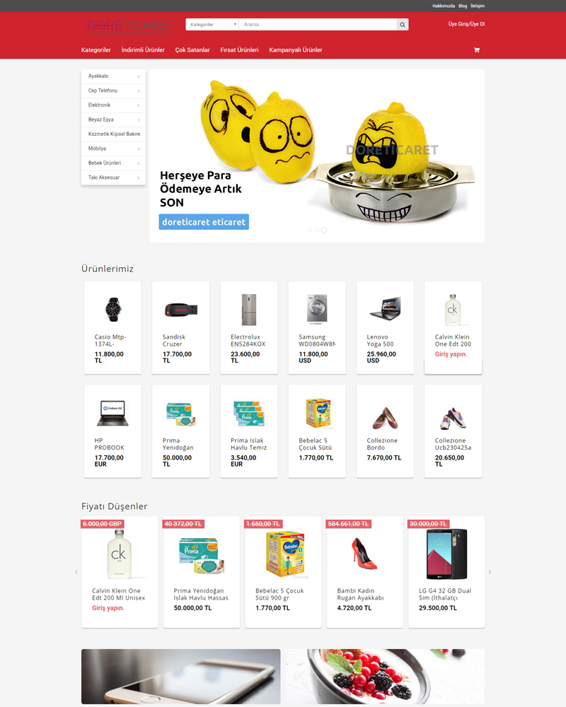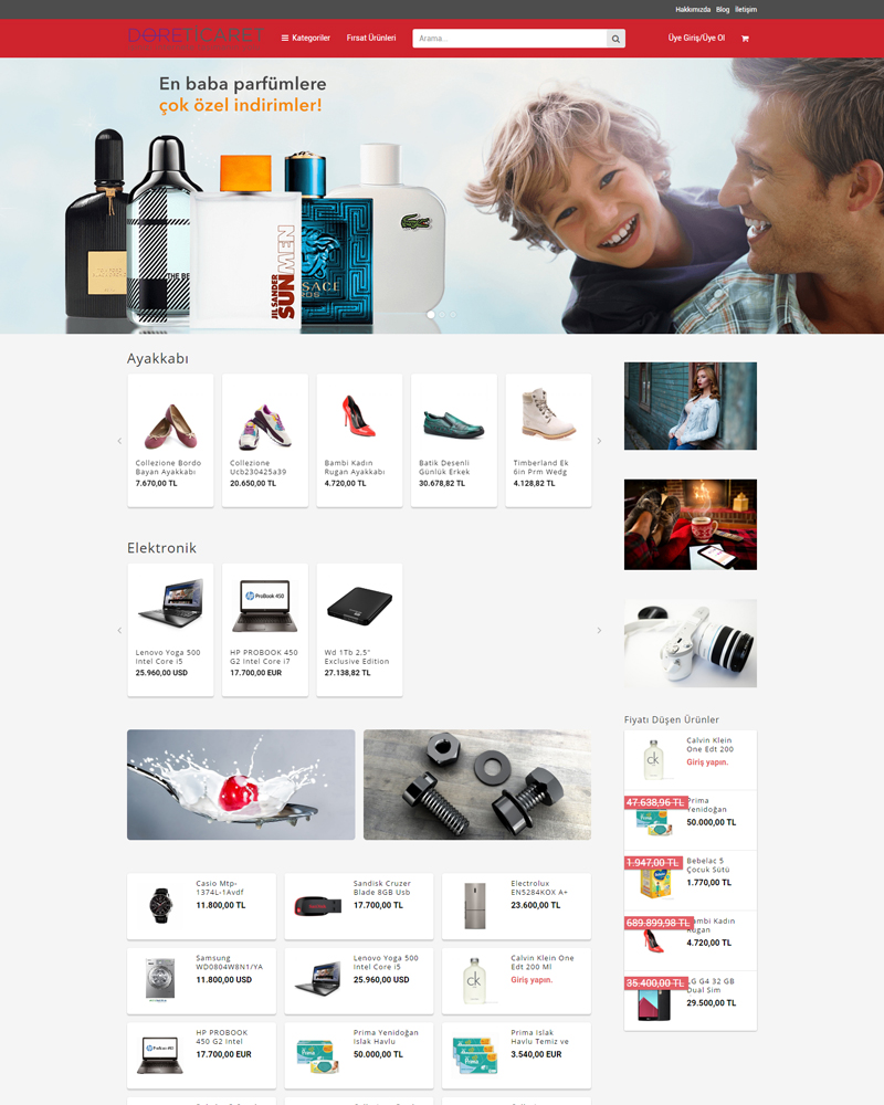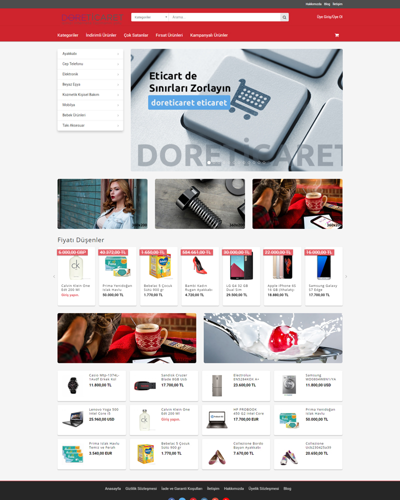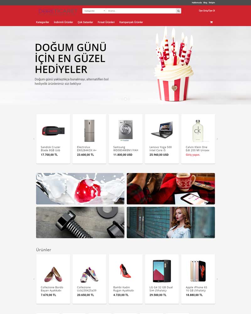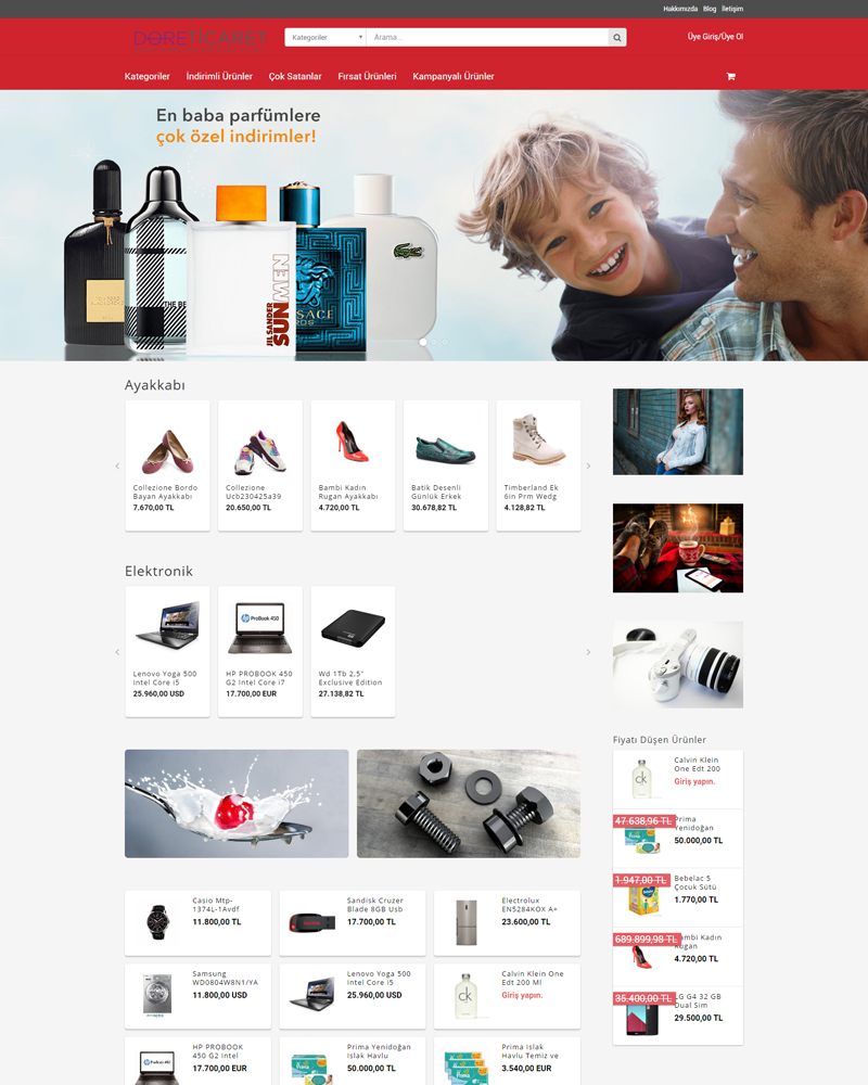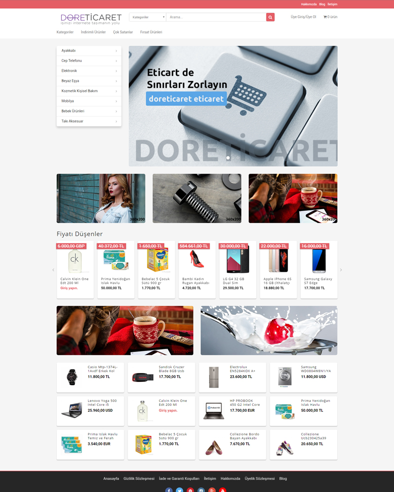 Sol Kategori Menü Boxed Slider 3 Adet Reklam Alanı Fiyatı Düşen 14 Ürün 2 Adet Reklam alanı 12 Adet Vitrin Ürünü